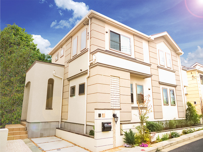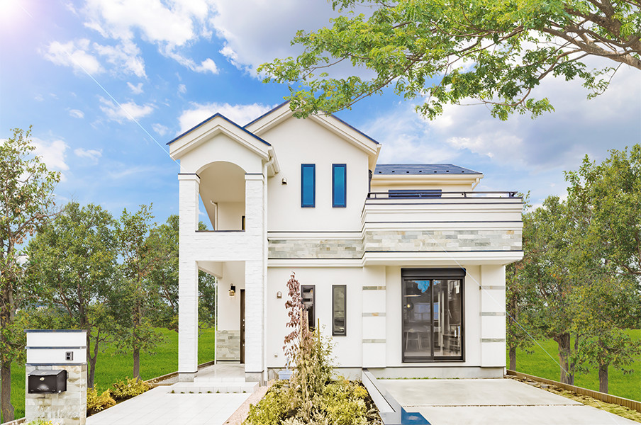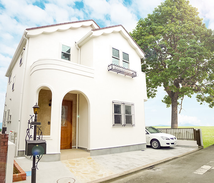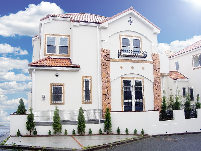 ─ 自然素材の塗り壁と天然石で街並みに映える高級感を演出 ─